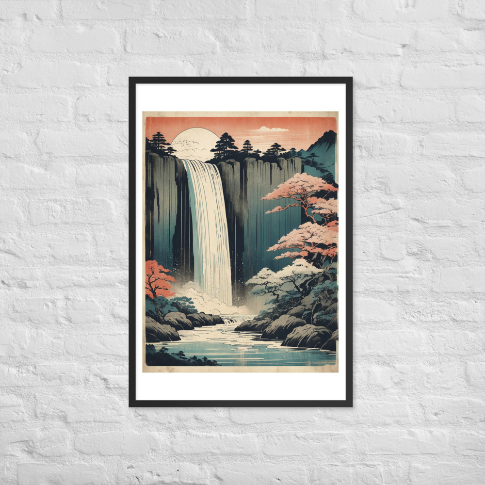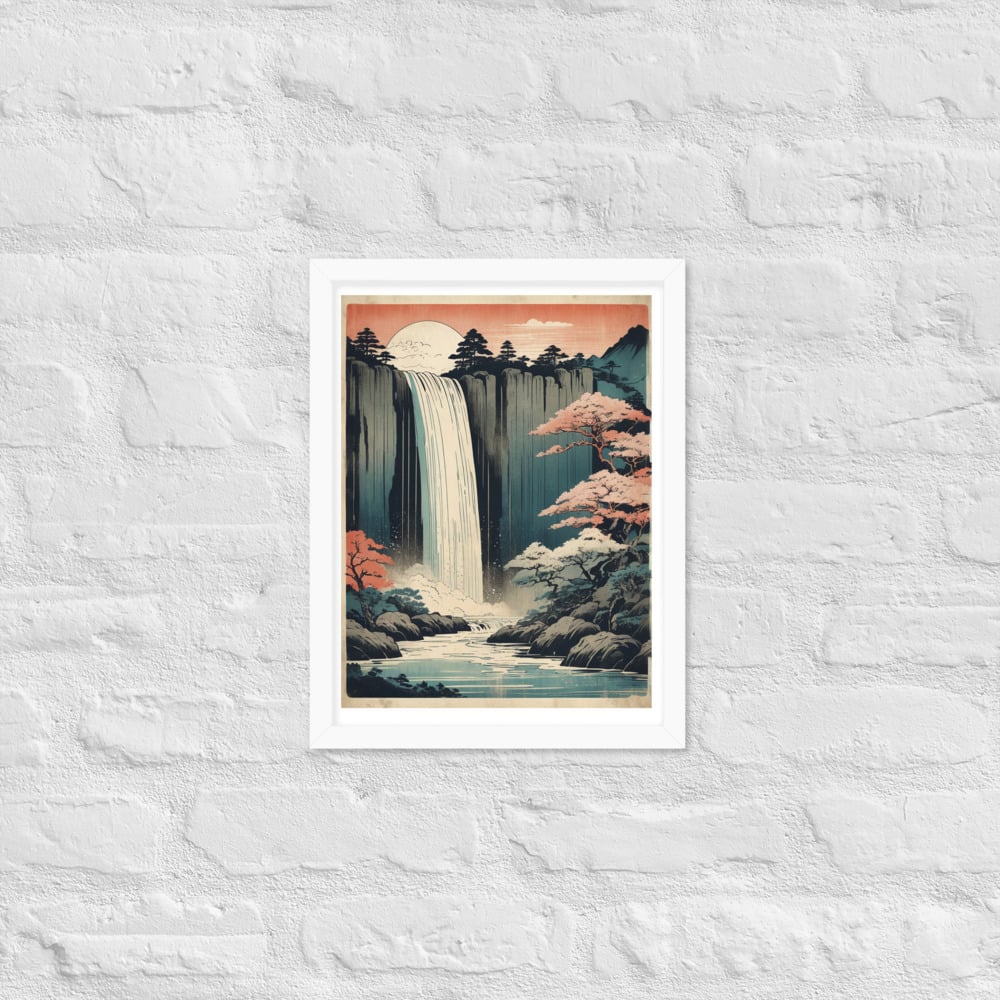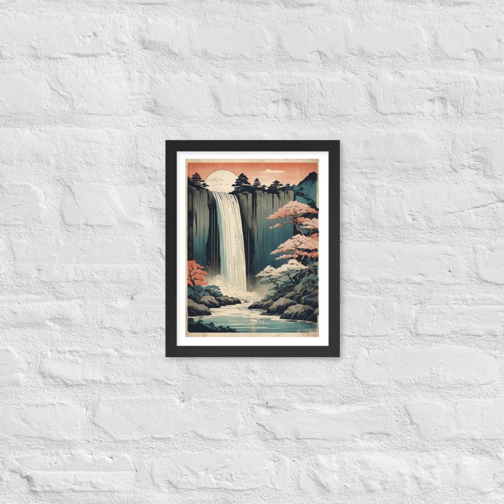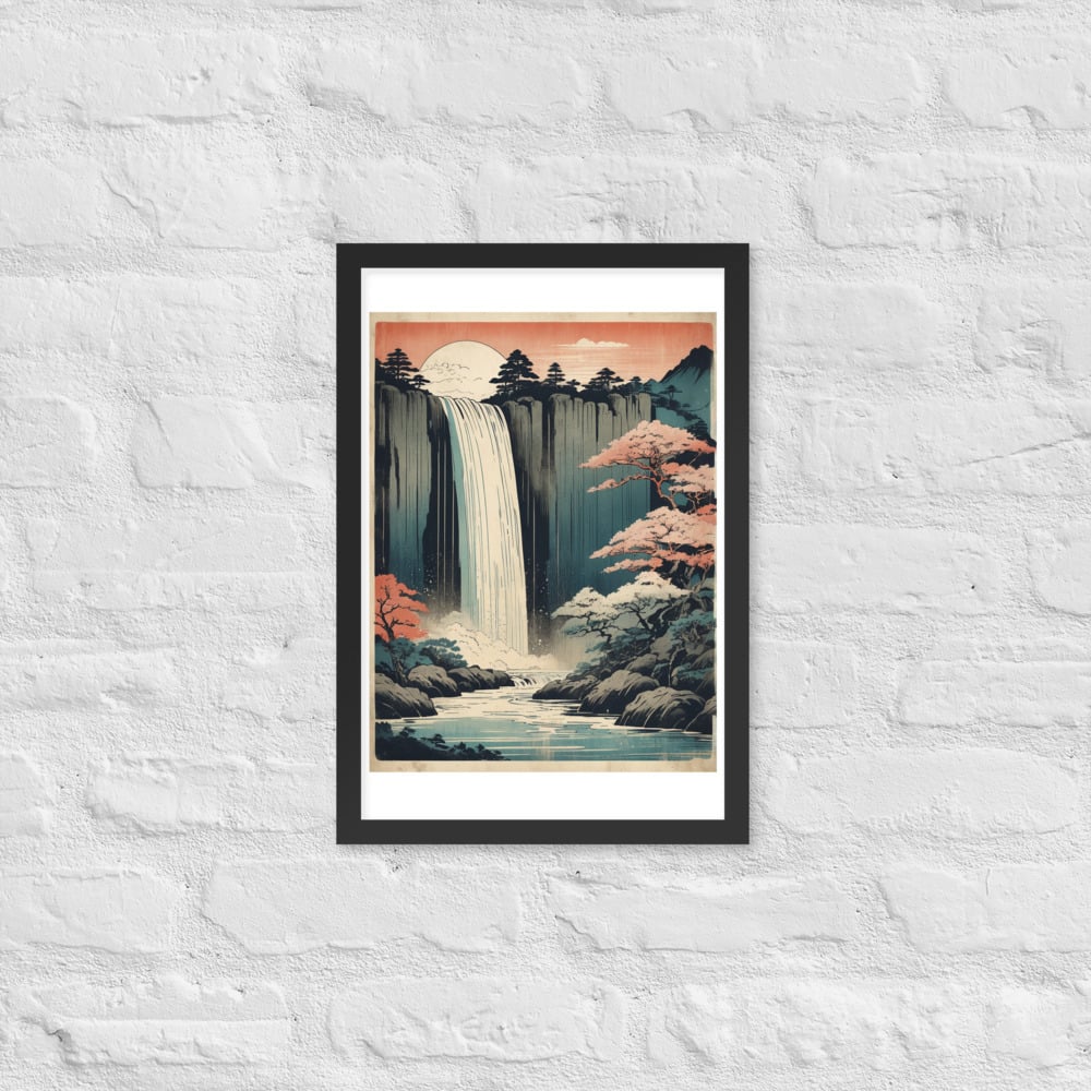 Vintage Waterfall Japanese Woodcut Ukiyo-e Framed poster