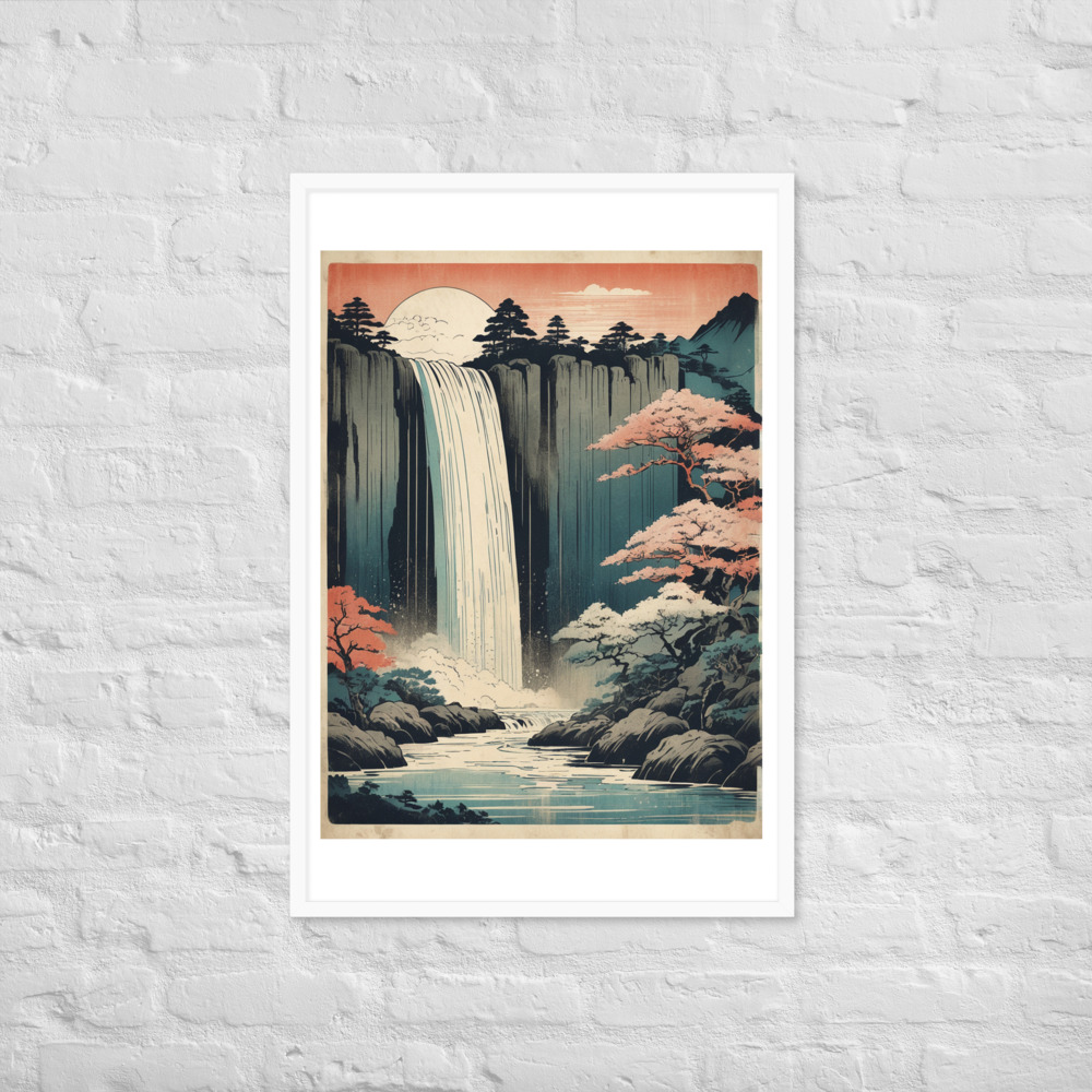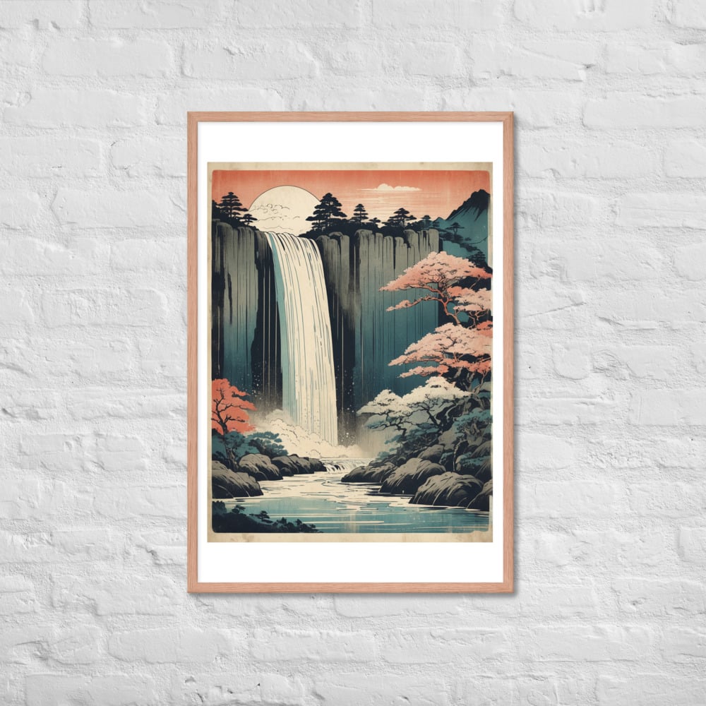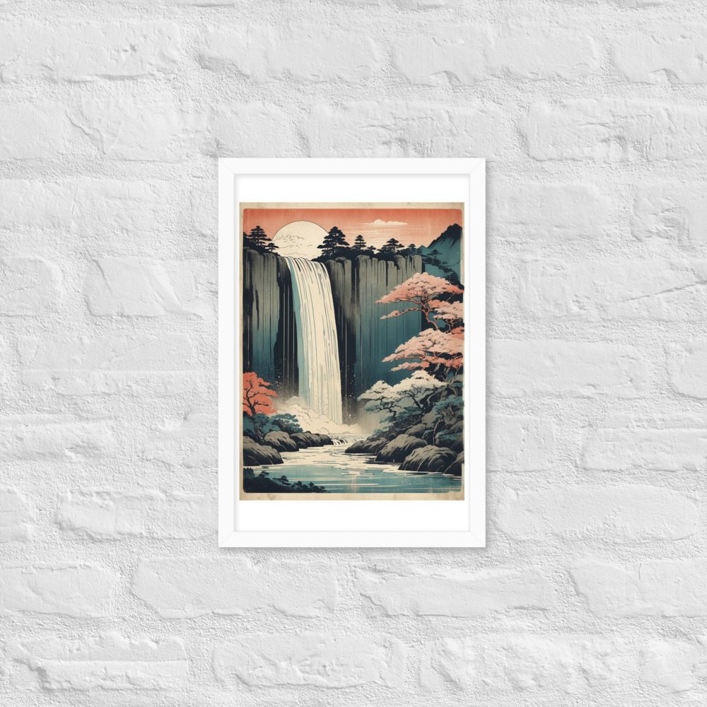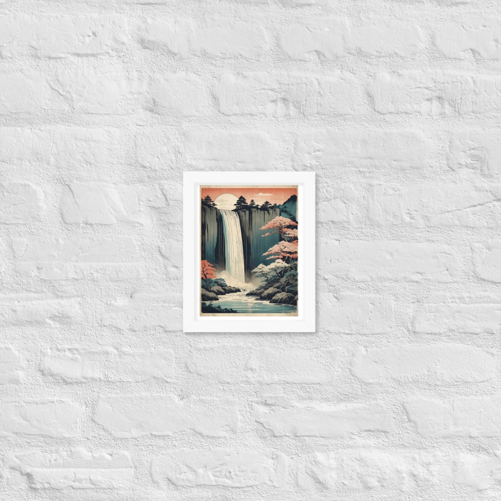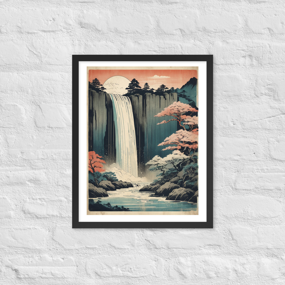 Vintage Waterfall Japanese Woodcut Ukiyo-e Framed poster