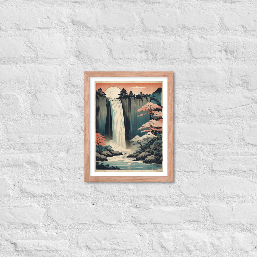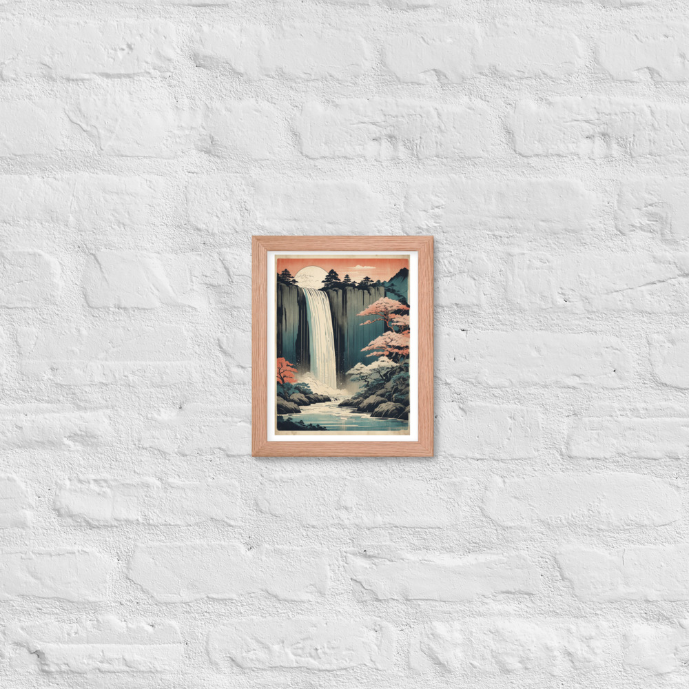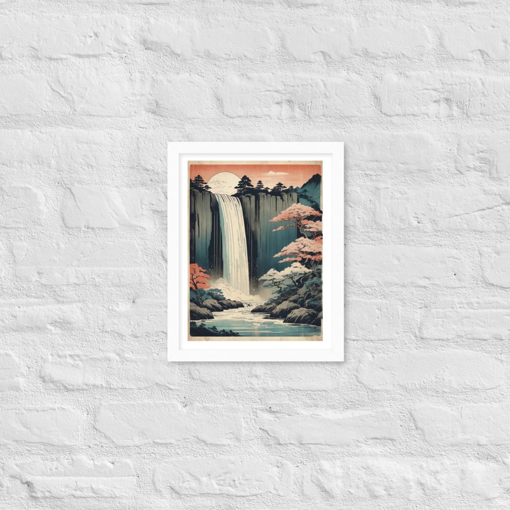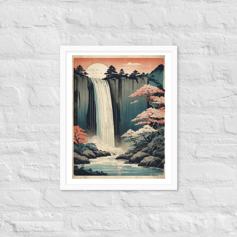 Vintage Waterfall Japanese Woodcut Ukiyo-e Framed poster