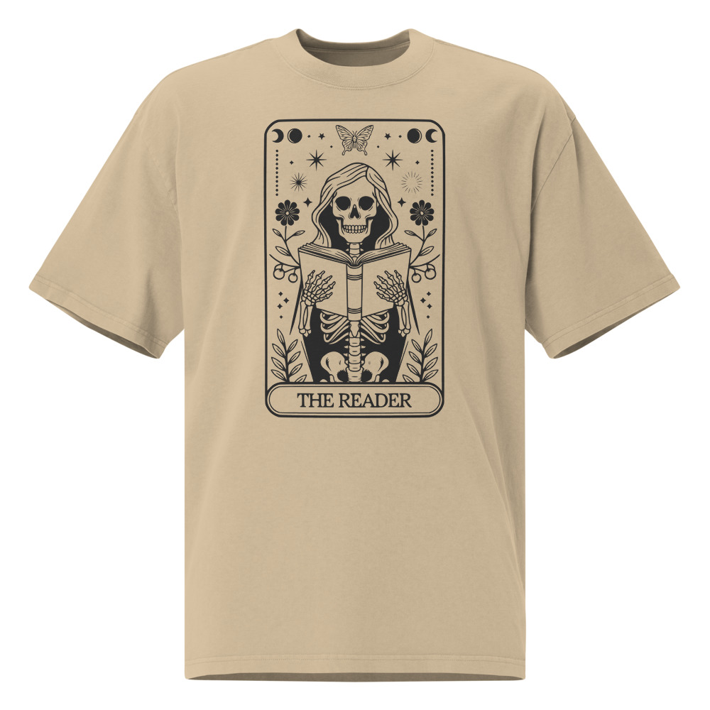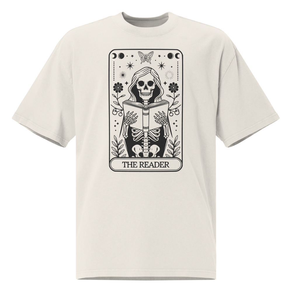 The Reader Skull Tarot Card Oversized faded t-shirt